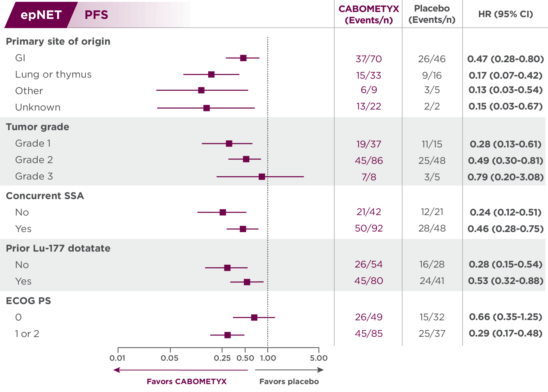 PFS results in epNET patients across select disease characteristics2